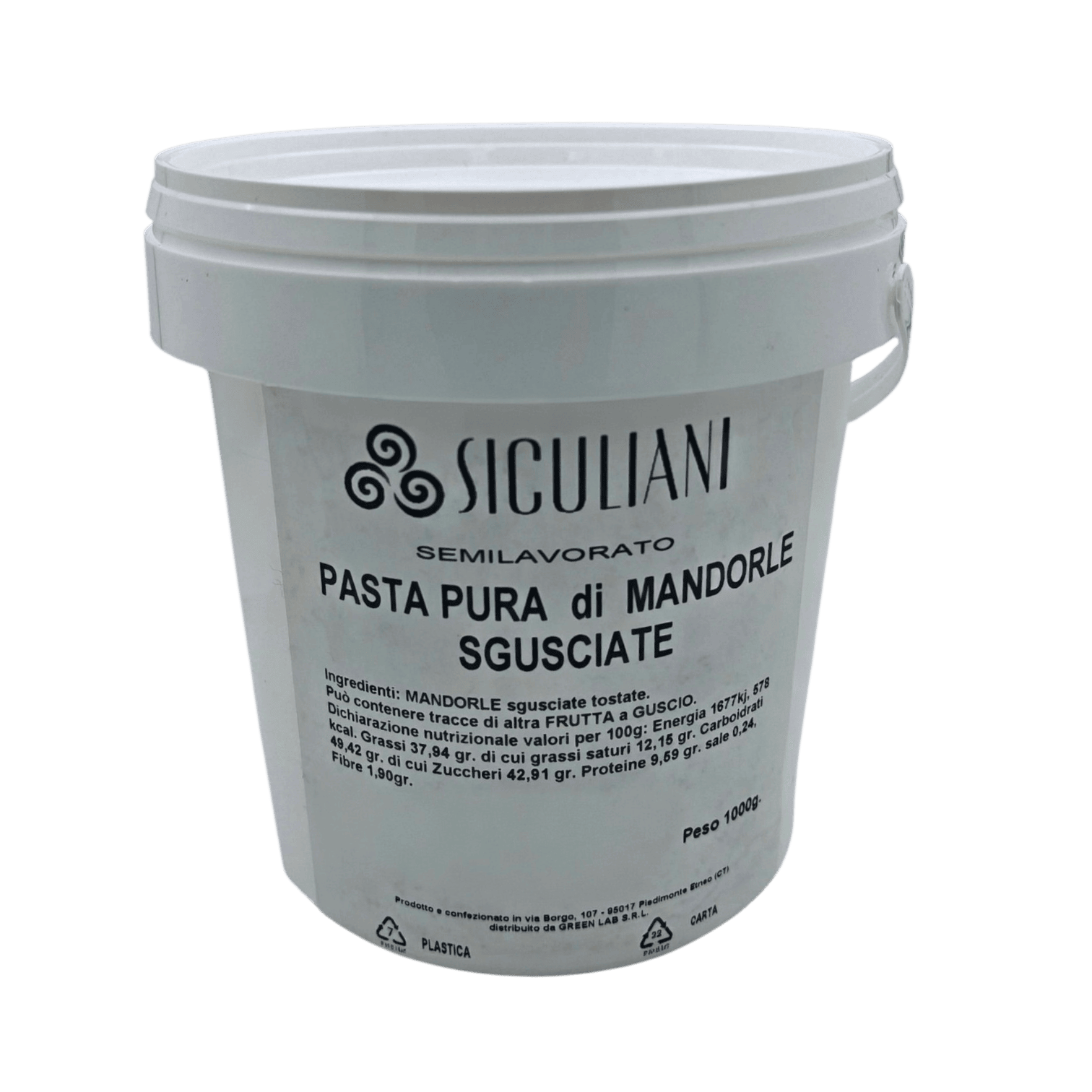 Prodotto e confezionato nello stabil. di via Borgo 109/111, 95017 Piedimonte Etneo (CT).